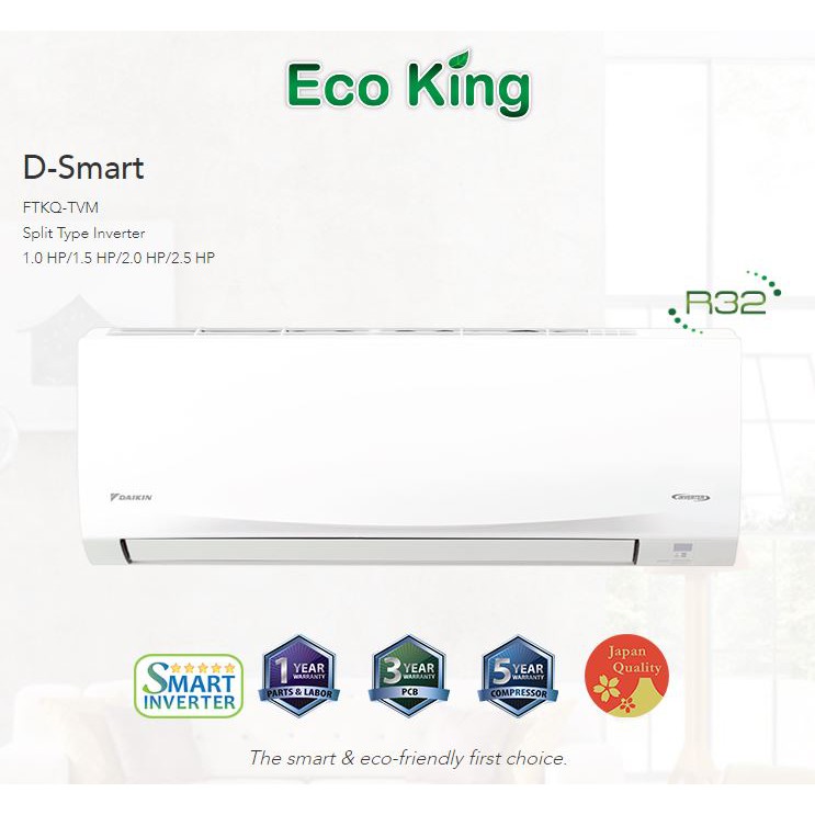 Daikin's printed circuit boards are specially strengthened to withstand voltage fluctuations. Daikin d'smarthome technology promises to provide your living space with an enhanced lifestyle of comfort, convenience, home ecosystems, security and entertainment. Vrv, opening the new era. Daikin d smart queen series 1hp ftkc25tvm inverter + installation package. This allows them to operate across a wide range of voltages in areas with unstable power.
